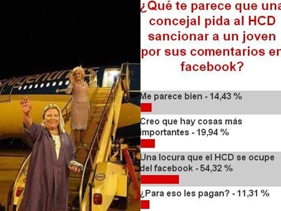 ¿Qué te parece que una concejal pida al HCD sancionar a un joven por sus comentarios en facebook?, los lectores respondieron de la siguiente manera: Me parece bien - 14,43 %, Creo que hay cosas más importantes - 19,94 %, Una locura que el HCD se ocupe del facebook - 54,32 %, ¿Para eso les pagan? - 11,31 %. Por lo tanto el, 85.57% se manifestó en contra de esta acción y solo un 14.43% a favor. El joven de 20 años habría escrito en su cuenta de face que si ganaba Scioli ella se vaya del país con Mirtha Legran y Lilita Carrio.
