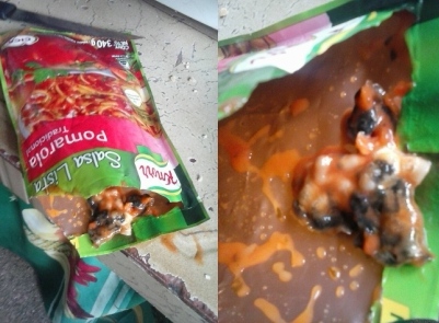 Fue a comprar un paquete de salsa y el mismo tenia una baboza adentro