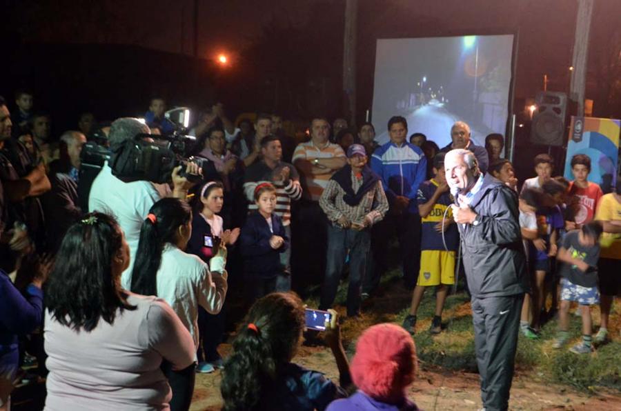 Tras recibir un caluroso recibimiento de los vecinos del barrio Alberdi, el jefe comunal encabezó un acto donde se activó el alumbrado por calle Corrientes, en 11 cuadras, en el tramo que se extiende desde Sarmiento a avenida Díaz Colodrero. El acto se hizo en la esquina de las calle Corrientes y Alberdi. Se inauguraron 11 cuadras de luces de sodio, en total 36 luminarias.