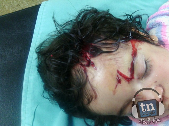 El hecho ocurrió días atrás en Goya, donde una beba de 1 año y 7 meses, fue mordida en la cabeza por un perro, a raíz del ataque del animal recibió dos heridas profundas y debió ser suturada y en cada una de ellas tiene 9 puntos. Hay gran indignación entre los padres y vecinos, debido a que la supuesta dueña del can alego que no es responsable por el hecho, relato el padre a cronista de TNGOYA. AMPLIAREMOS