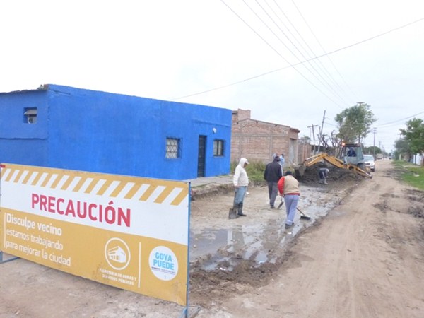 La obra de ampliación de la red cloacal en el barrio San Ramón es ejecutada por la Municipalidad de Goya y beneficia a numerosos vecinos de esa barriada de la zona Este de la ciudad. En tanto que los vecinos aportaron los materiales para realizar el emprendimiento.