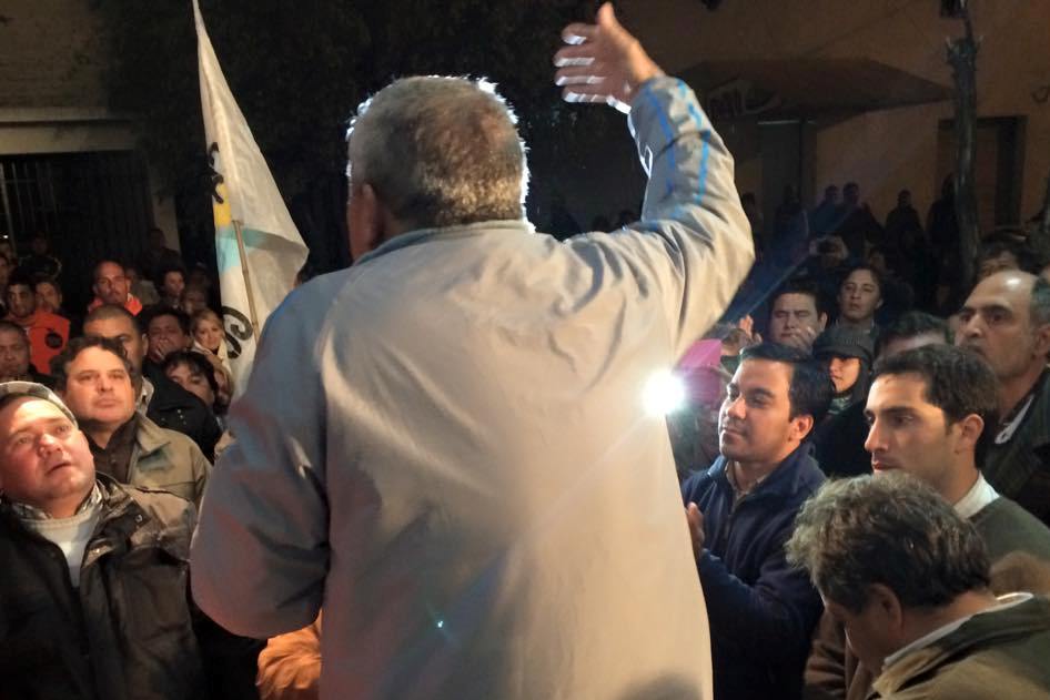 Asi recibían al profe y a Oscar en la base los referentes políticos
