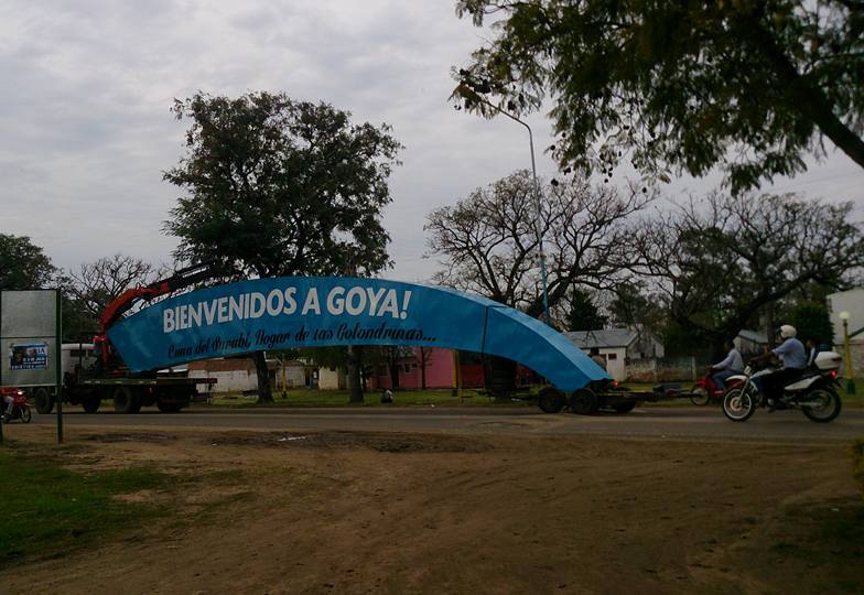 Durante el fin de semana, la Municipalidad de Goya colocó a metros de la Rotonda de Acceso Norte sobre la Avenida Mazzantti, un imponente arco que brinda la bienvenida a quienes ingresan a la ciudad, con referencias de la misma, y despide a quienes transitan en sentido contrario.
