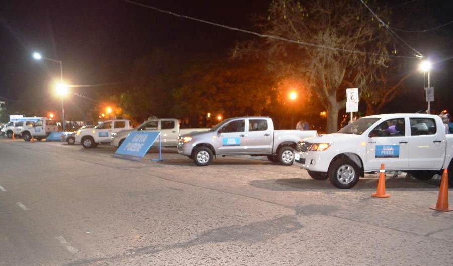 El Intendente Gerardo Bassi rodeado de funcionarios, concejales, y candidatos a legisladores del Frente para la Victoria presentó anoche frente a la plaza Mitre, las cuatro camionetas Toyota doble cabina (dos 4x2 y dos 4x4) y dos camiones que gestionó ante la Nación. Pasarán a cumplir funciones en distintas áreas de la comuna, tanto de carácter técnico como asistencial y de servicios.