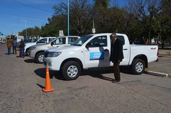 Cuatro camionetas Toyota doble cabina (dos 4x2 y dos 4x4) y dos camiones a los que se colocarán sendas hidro grúas para instalaciones y mantenimiento del sistema eléctrico, llegaron a Goya y estarán estacionadas el fin de semana en Plaza Mitre para que la ciudadanía las conozca. Sumando la pick up Chevrolet adquirida el año anterior y los tres camiones con caja volcadora que adquirió la comuna a través de Nación Leasing, son diez los vehículos incorporados en 18 meses de gestión, tras años de que esto no ocurría.