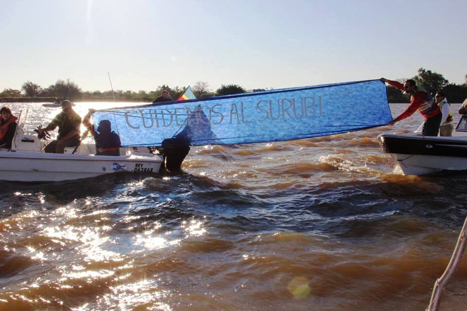 Este domingo la costanera goyana se vio animada por un buen marco de público que fue a apoyar la campaña SALVEMOS AL SURUBI, impulsada por responsables de COMUPE, Comisión Interclubes de Pesca Goya y barras pesqueras. Con la firma de un petitorio a autoridades provinciales y un abrazo náutico simbólico al Riacho Goya, este domingo se inicio la Campaña “Salvemos al Surubí”.
