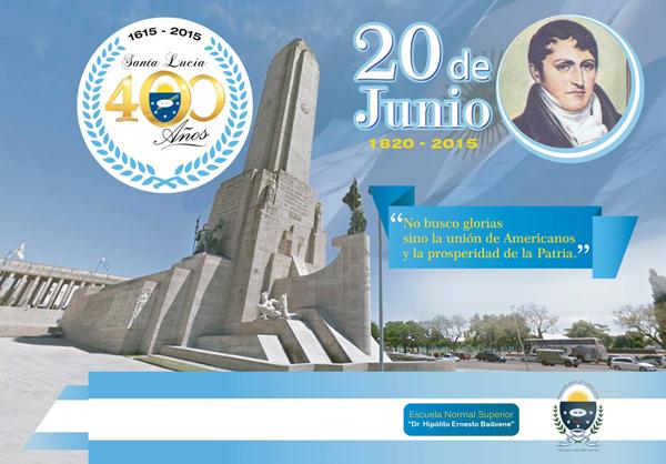 Este sábado 20 de junio a partir de las 09:00 hs en la Plaza Libertad, se llevará a cabo el acto central y promesa de lealtad a la Bandera en el marco de los 400 Años de la ciudad. Organizado por la Municipalidad de Santa Lucía a través de la Dirección de Cultura y la Esc. Normal Superior Dr. Hipólito E. Baibiene.