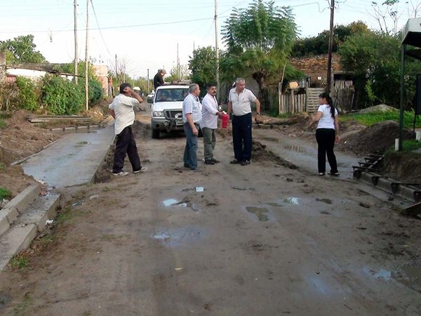 Intendente Bassi inspecciono obra de cordón cuneta en barrio Itati