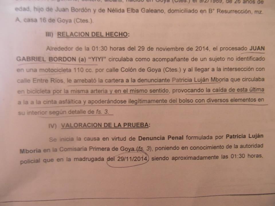 En la mañana del miercoles en el Tribunal Oral Penal de Goya, condenaron a 4 años de prision a Gabriel Bordon, el sujeto que arrebato la cartera a la docente y Bombero de Goya, Patricia Mboria, el ilicito ocurrio el pasado sábado 29 de Noviembre del 2014. Hoy se dicto sentencia, el condenado seria trasladado a una unidad penal de la capital correntina.