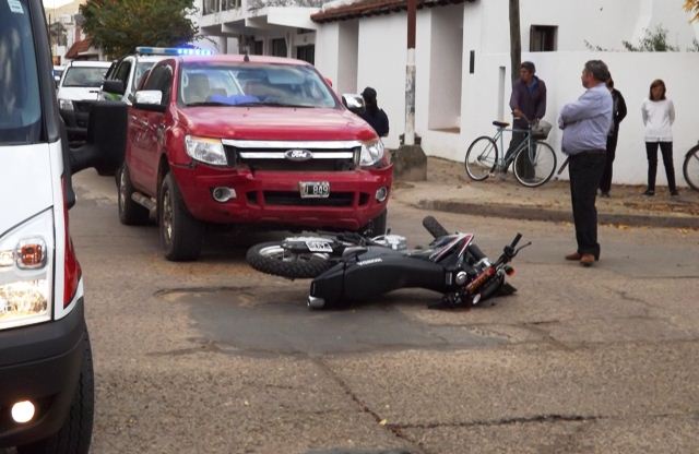 En la mañana del lunes se registro un siniestro vial en las calles Corrientes y España en donde una moto Honda Tornado de color negro dominio 709 KTV guiado por un joven Gómez Ricardo fue impactado por una camioneta Ford Ranger de color rojo chapa patente LVU 849 el cual era conducido por Romero Ramón Rubén de la 3ra sección Manantiales.