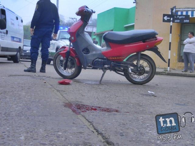 En la mañana del lunes, en la interseccion de Luis Agote y Corrientes, se registro una colisión entre una camioneta land rover, conducida por una persona de apellido Bolo y una motocicleta motomel 110 de color rojo chapa patente idz 166 guiada por Roxana Altamirano de 19 años quien resultó con heridas en el cuero cabelludo, al caer en el pavimento, producto que no llevaba el casco. Fue asistida por Bomberos y traasladada en ambulancia al nosocomio local. IMAGENES