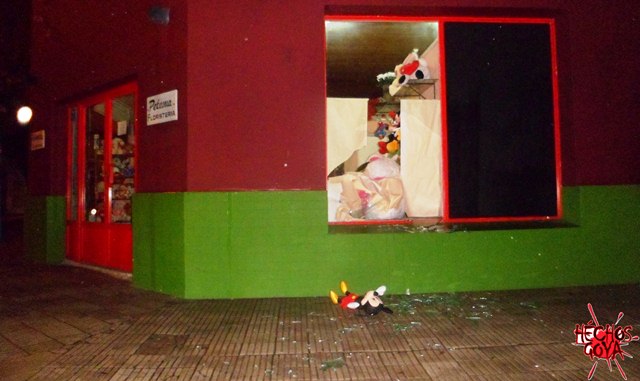 Pasadas las 06,00 horas de la mañana del domingo el local comercial Petunia Floristería ha sido nuevamente blanco de actos vandálicos. Tras el rápido accionar de la policía se pudo saber que habría un demorado hallado en el lugar en actitud sospechosa a quien se lo encontró con trozos de escombro en la mano.