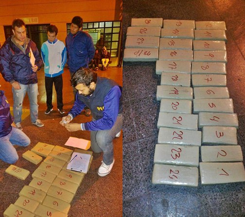 NOTA AMPLIADA: En procedimiento se llevó a cabo en Bella Vista, donde un sujeto de apellido Ayala (26 años), fue interceptado por los efectivos que estaban apostados en la terminal de dicha localidad, en la requisa se lo encontró en su poder un pan de marihuana, luego al requisar su equipaje se encontró 27 panes más, cuya mercadería peso alrededor de los 28 Kg, informaron desde la fuerza a cronistas de TNGOYA. Fue detenido y trasladado a la delegación de nuestra ciudad, donde permanece detenido a disposición de la justicia federal. IMÁGENES