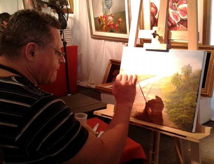 Rodolfo Isaurralde expuso y pintó en el predio de costa surubí