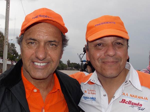 El pasado sábado en el marco de la largada de embarcaciones de la 40° Fiesta Nacional del Surubí, estuvo presente en Goya el Gobernador de la Provincia de Buenos Aires Daniel Scioli, en una breve reunión mantenida en el flotante de nuestra costanera con Jorge Bellando y Oscar Macías, ratificó y ordenó el auspicio deportivo al piloto goyano durante el presente año.