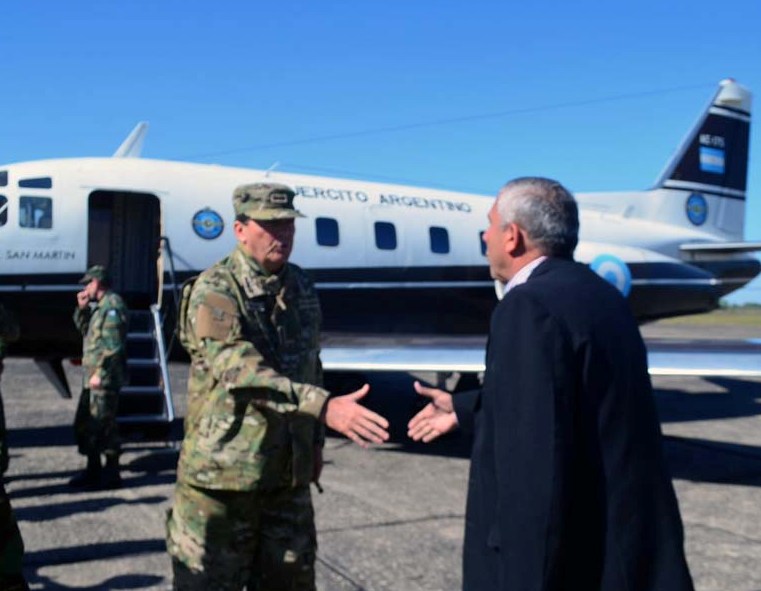 El intendente Bassi recibió en el aeropuerto de Goya al jefe del ejército Argentino
